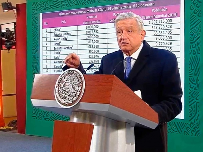 Ante los cuestionamientos sobre el proceso de vacunación en el país, López Obrador aclaró que México es el país número 18 en el mundo en la aplicación de vacunas contra Covid-19 a sus cerca de 130 millones de habitantes.
